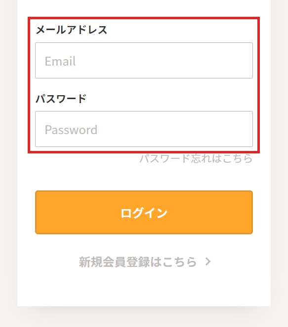 ログイン 1ログイン画面 会員登録時に登録いただいた「メールアドレス」と、登録完了メールに記載されております「パスワード」をご利用ください。メールが見つからない場合はお手数ですが店舗までお問い合わせください。 ※画面はサンプルです。 戻る